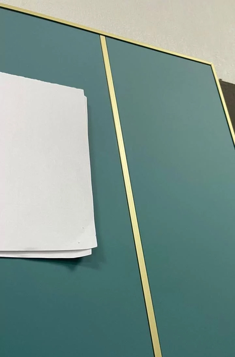 - Алюминиева кромка по периметру полотна Цвет золото + Вертикальный алюминиевый молдинг Цвет золото